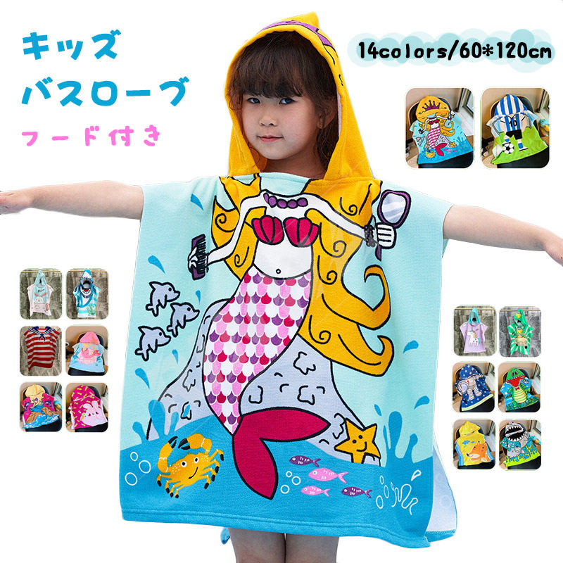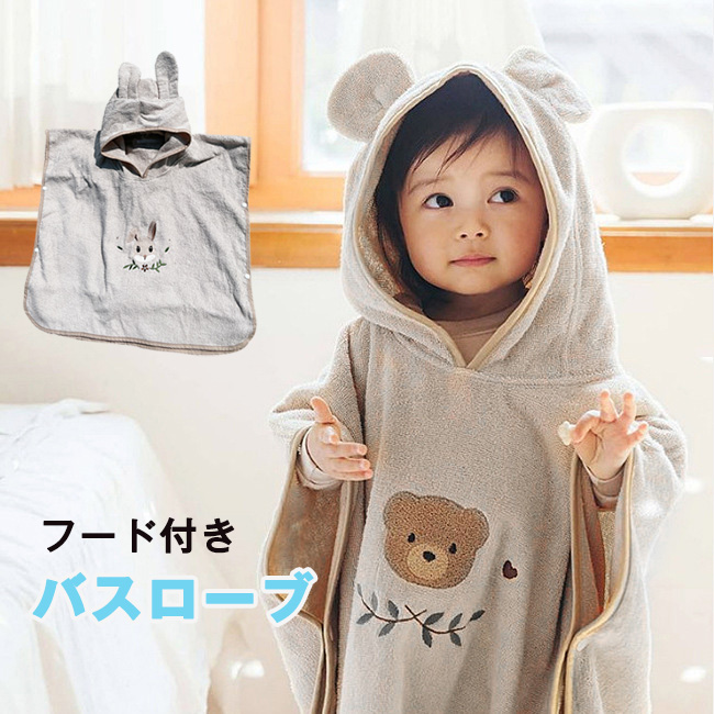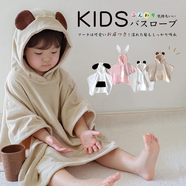 バスローブ ベビー キッズ 子供用 赤ちゃん バスローブ バスタオル ポンチョタオル キッズバスタオル フード お風呂 プール 海 海水浴
