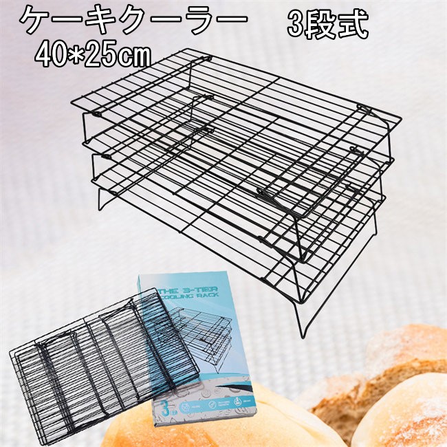 ケーキクーラー四角タイプ3段ブラック炭素鋼便利手軽くキッチン用品 食器 調理器具 調理器具 製菓器具 製菓 製パン器具 回転台 ケーキクーラー