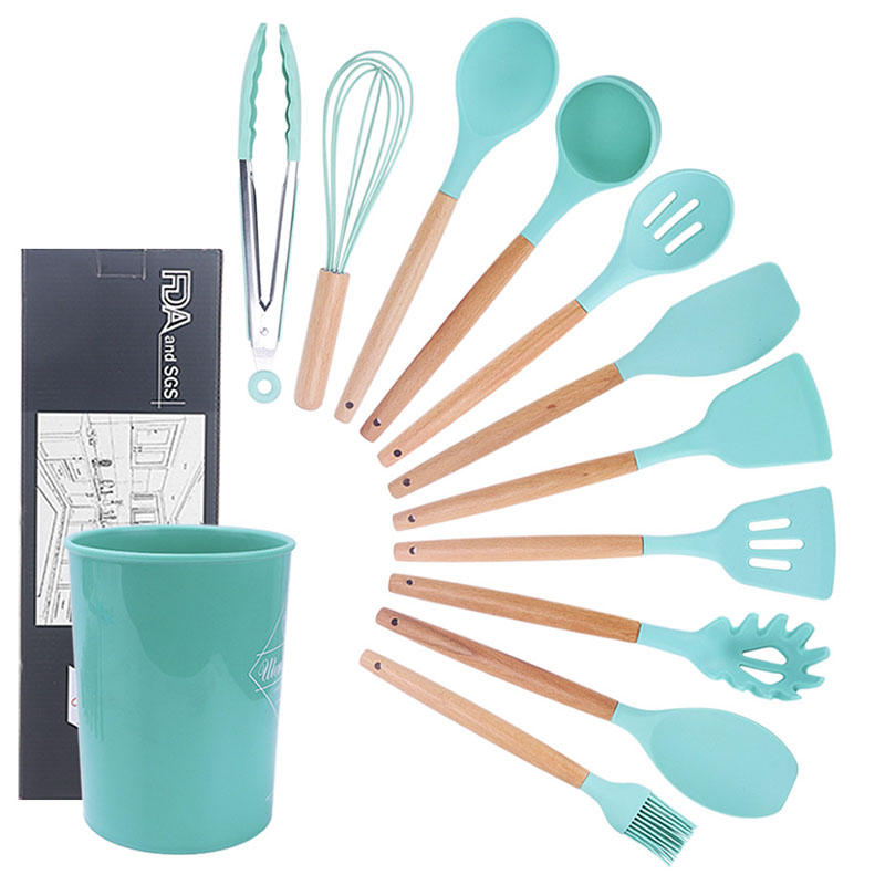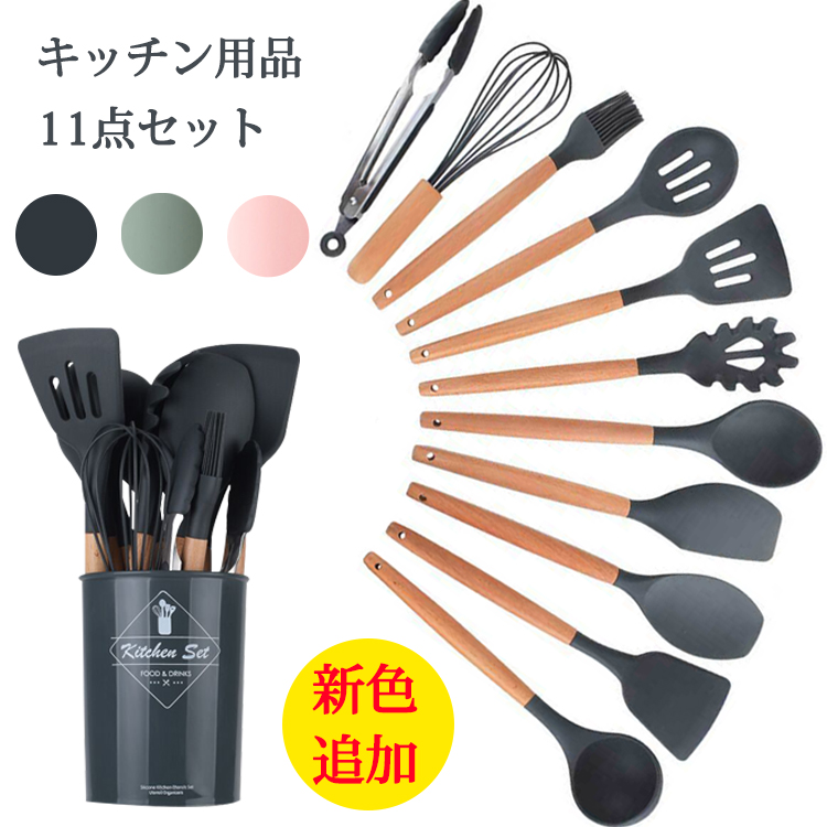 キッチンツール 11点セット シリコン製 キッチンツールセット 収納容器付き キッチン用品 安全素材 台所用品 耐熱シリコ 調理 料理 製菓器具 クッキング用品 フライ返し スプーンおたま トング 泡