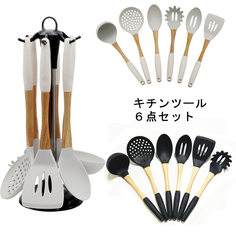キッチンツール 6点セット 収納ラック付き シリコン製 キッチンツールセット キッチン用品 安全素材 台所用品 耐熱シリコ 調理 料理 製菓器具 クッキング用品 フライ返し スプーンおたま ターナー