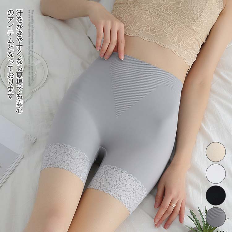 ペチパンツ 見せパン 透け防止 吸水速乾 スリム サラサラ ペチコート 裾レース スパッツ ボクサーパンツ チラ見え防止 ウエストゴム インナーパンツ ショートパンツ レディース