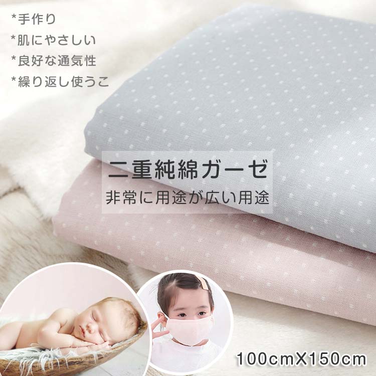 ダブルガーゼ 綿100% あてガーゼ 大人用 生地 繰り返し 洗える ホワイト 花粉対応 マスクキットマスク用 二層ガーゼ コットン 使い捨て 約150幅×長100