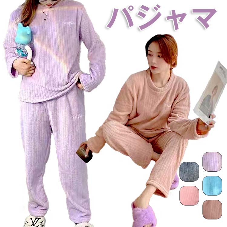 ルームウェア レディース もこもこ ナイトウェア レディース かわいい 春 秋 冬 上下セット 柔らかい 暖かい 長ズボン トップス 防寒 可愛い 無地 ハート柄 厚手