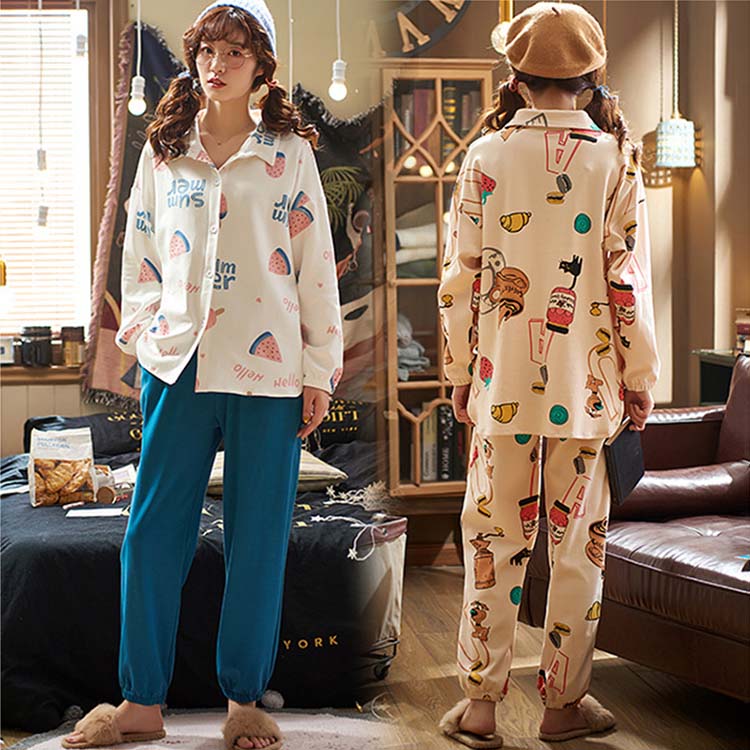 レディース パジャマ 長袖 セットアップ 上下セット 可愛い 秋 ルームウェア 部屋着 ナイトウェア 女性 前開きパジャマ ロングパンツ シャツパジャマ