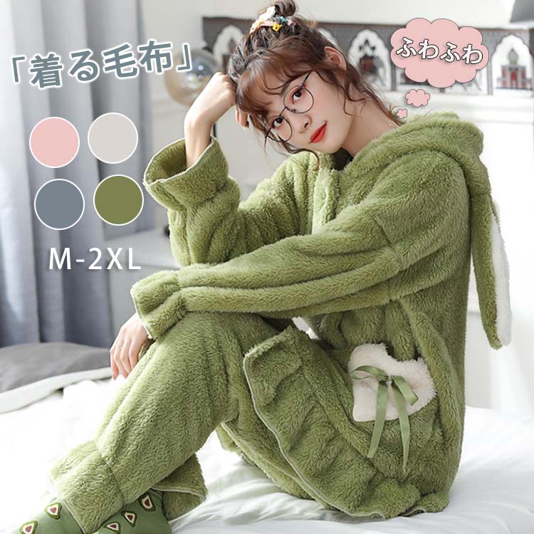 着る毛布 フード付き パンツ トップス ふわふわ 上下セット パジャマ 寒さ対策 おしゃれ 吸汗 ボア 可愛い 秋冬 防寒 速乾 秋 入院 ナイトウェア 部屋着