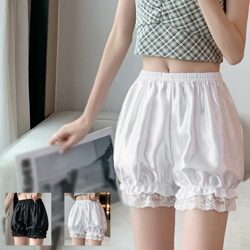 サテン かぼちゃパンツ レース付き ドロワーズ メイド服 サテンパンツ かぼちゃ つるつる 可愛い フリーサイズ