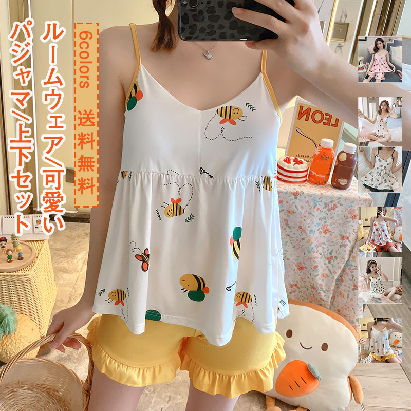 パジャマ レディース 部屋着 上下セット キャミソール ショーパン カップ入り 可愛い ルームウェア カジュアル ゆったり おしゃれ