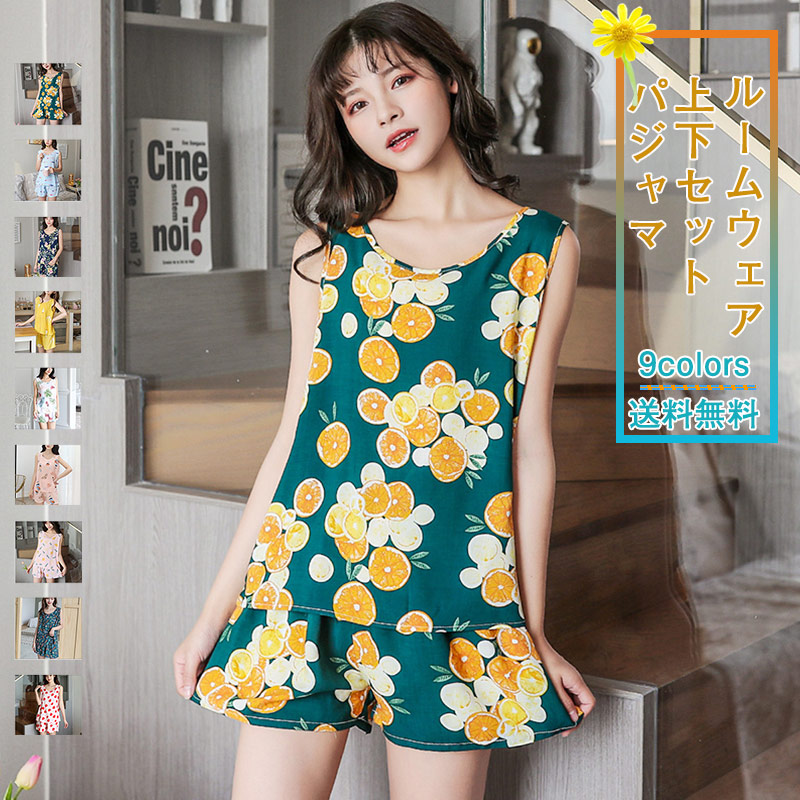 パジャマ レディース ルームウェア 上下セット タンクトップ ショートパンツ 寝巻き 丸首 セットアップ 部屋着 薄手 涼しい ゆったり オシャレ