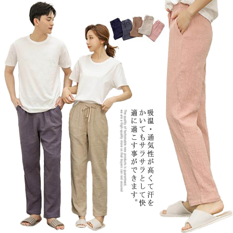 パジャマ ロングパンツ ルームウェア 綿 部屋着 ナイトウェア ルームパンツ レディース ポケット付き かわいい メンズ リラックス 春 夏 ボトムス ロング リラックス