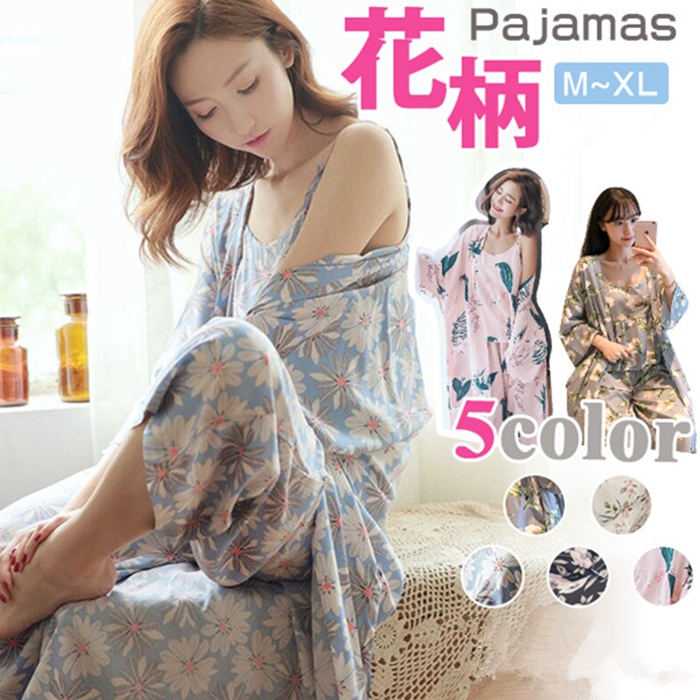 花柄ルームウェア パジャマ レディース 3点セット セットアップインナー 下着 ナイトウェア レディース ナイトウェア ルームウェア ルームウェア 上下セット