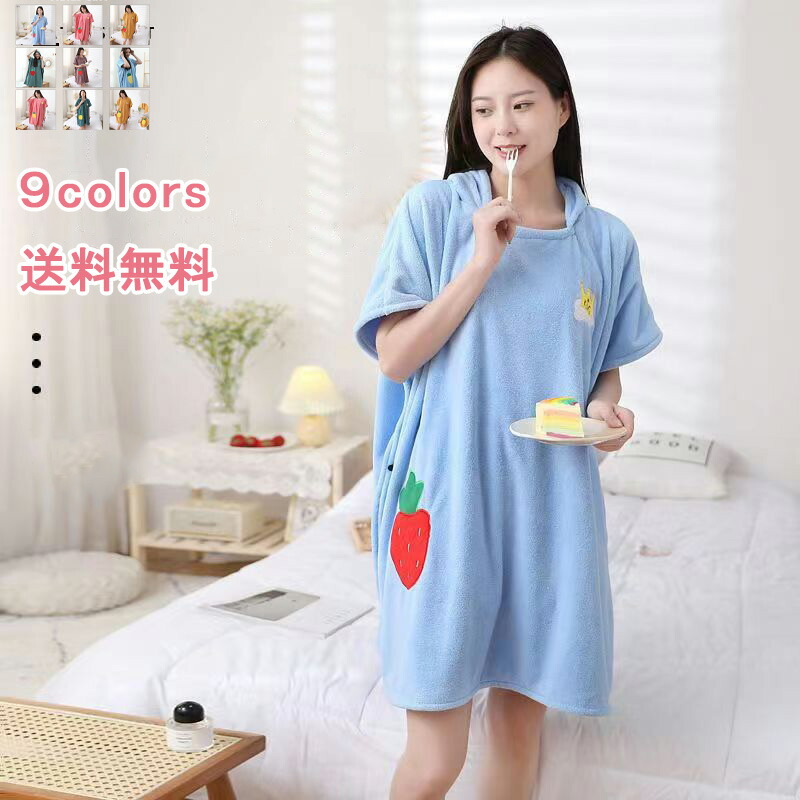 バスローブ レディース ラップタオル ワンピース風 フード付き プリント 可愛い シャワーローブ 部屋着 超吸水 速乾 バス用品 きれいめ おしゃれ イチゴ