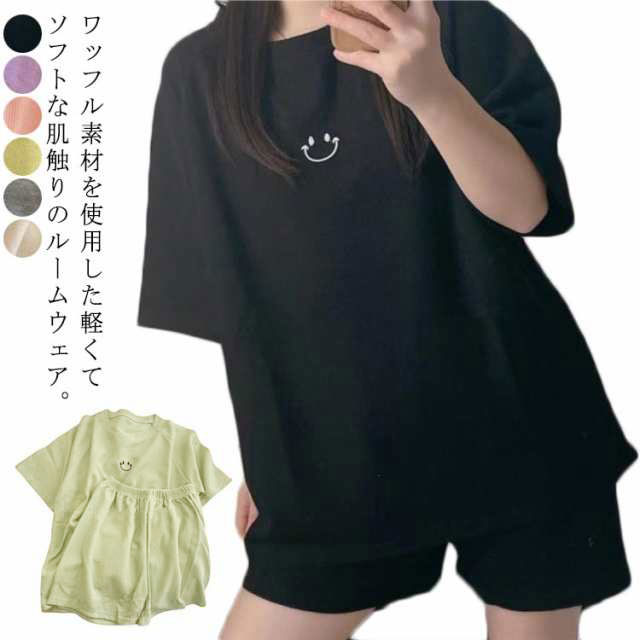 ルームウェア パジャマ 上下セット ショートパンツ ワッフル生地 半袖 ナイトウェア Tシャツ ボトムス セットアップ 女性 ショーパン ワンマイルウェア