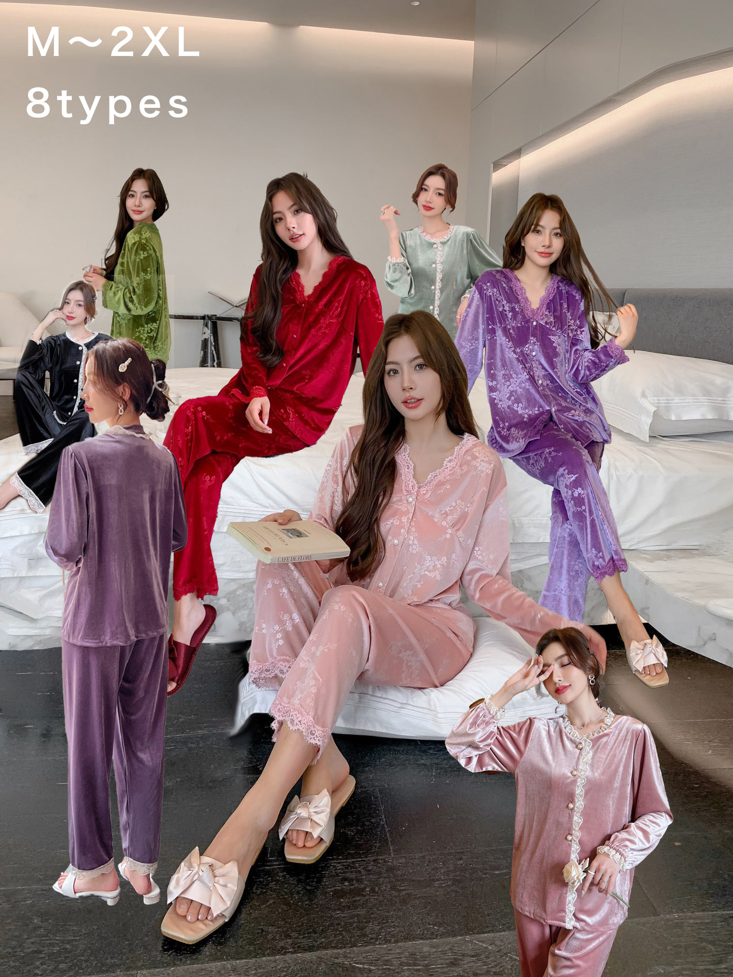 レディース パジャマ ルームウェア 長袖長パン 寝巻き パジャマ レディースパジャマ 大人 パジャマ 前開き 部屋着 リラックスウェア ナイトウェア 上下セット 女性 かわいい pajamas M~2