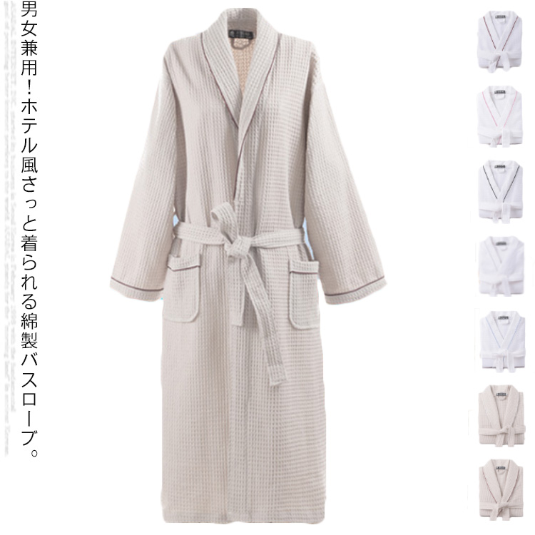 男女兼用バスローブ 通気 ロング丈 薄手 吸水 浴衣 綿麻インナー 下着 ナイトウェア レディース ナイトウェア ルームウェア バスローブ