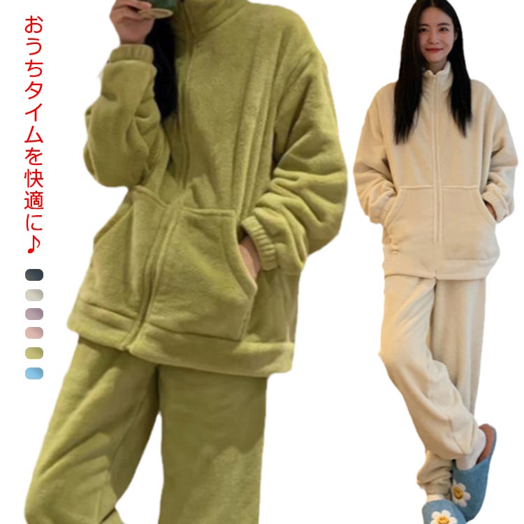 ルームウェア レディース 上下セット 暖かい もこもこ パジャマ 厚手 起毛 秋冬 ふわふわ フリース ゆったり 刺繍 可愛い ポケット付 部屋着 あったか 肌に優しい 長ズボン 寝間着