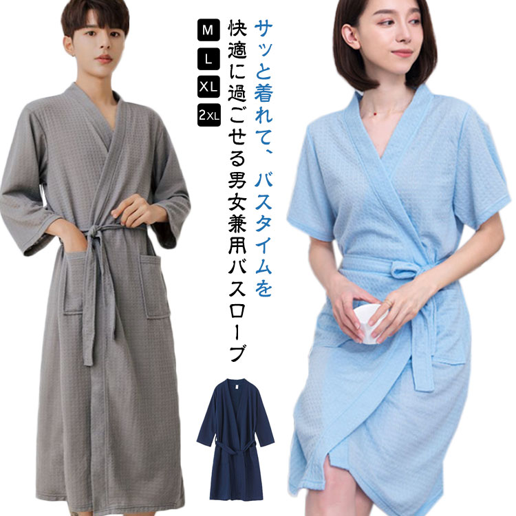 M~2XL 選べる袖丈 男女兼用バスローブ 薄手 ロング丈 M~2XLインナー 下着 ナイトウェア レディース ナイトウェア ルームウェア バスローブ