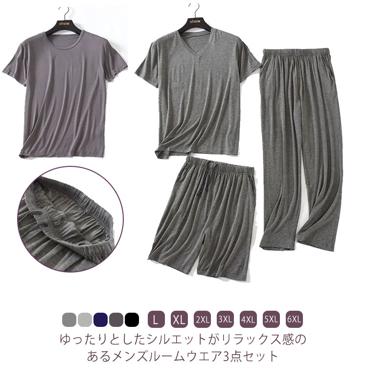 ひんやり ルームウエア3点セット 部屋着 L~6XL 半袖 L~6XLインナー 下着 ナイトウェア メンズ ナイトウェア ルームウェア ルームウェア 上下セット