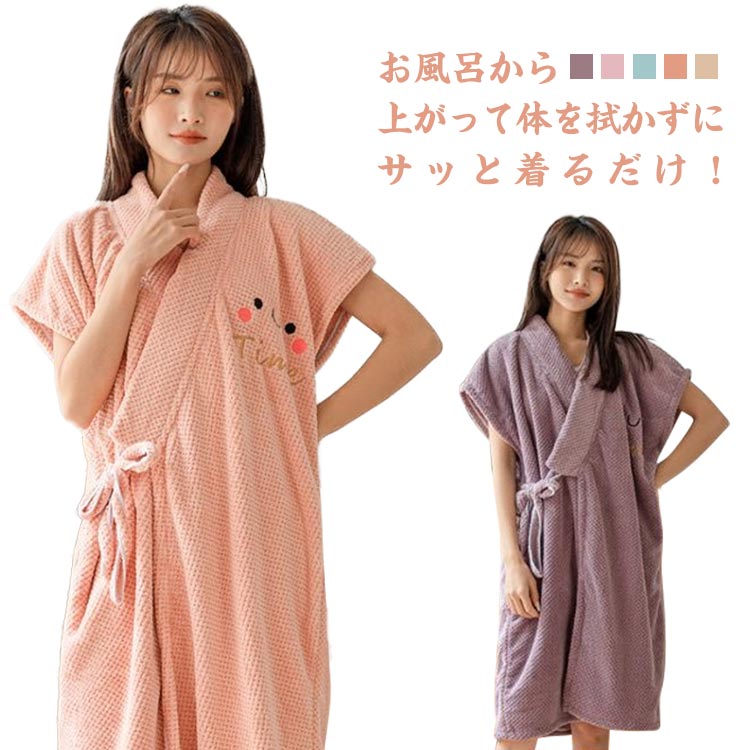 吸水 着るバスローブ 半袖 前開き 着るバスローブ ふわふわ 140*90cmインナー 下着 ナイトウェア レディース ナイトウェア ルームウェア バスローブ