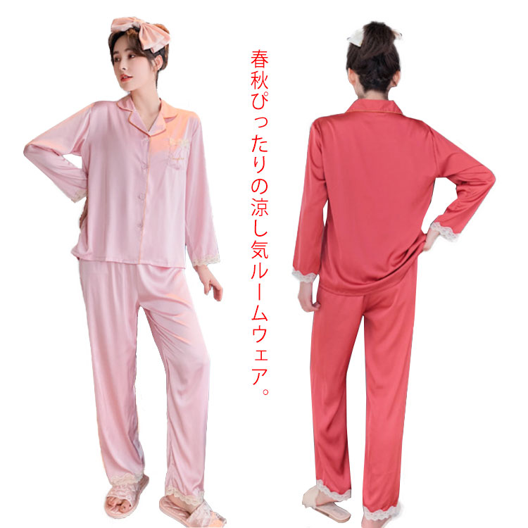 ルームウェア レディース 上下セット パジャマ かわいい 長袖 シャツ ロングパンツ 部屋着 ナイトウェア 春夏秋 前開き シンプル 薄手 カジュアル 20代 30代 無地 柔らか ゆったり