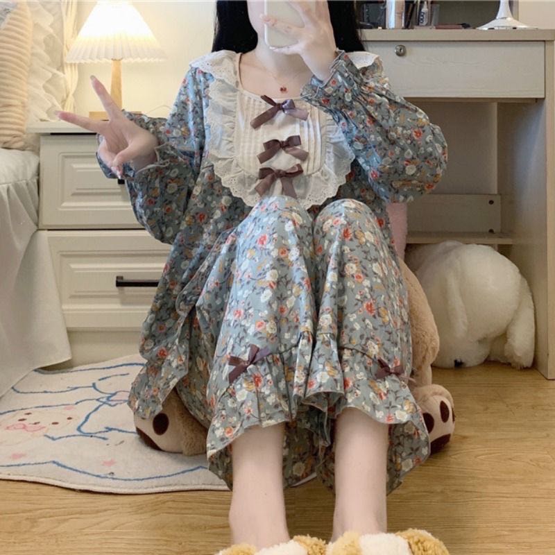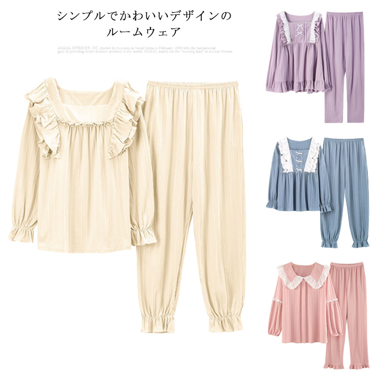 ルームウェア レディース 長袖 上下セット 純綿 リボン パジャマ フリル 部屋着 寝間着 長ズボン 秋冬 春 リラックス 大人可愛い カジュアル 女性 おしゃれ ナイトウェア プレゼント ポケットあ