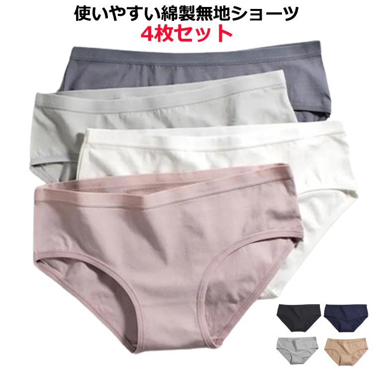 無地 シンプル ショーツ4枚セット 快適 綿 蒸れない インナー 下着 ナイトウェア レディース インナー 下着 ランジェリー ショーツ スタンダード