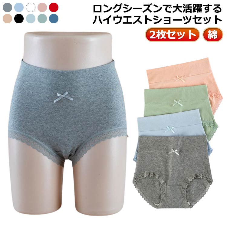 レースショーツ レディース 下着 2枚組 パンティー 綿 コットン ハイウエスト 股上深め きれいめ ショーツ 響かない ベーシック デイリー ストレッチ 光沢 伸縮性 通気性 花柄