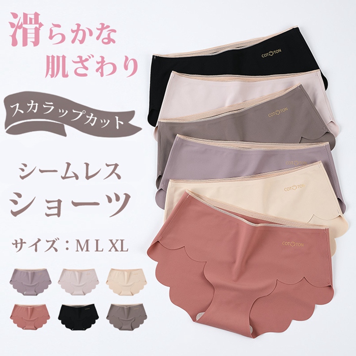 インナー レディース スカラップ 無縫製 シームレス 6色セット ラインが出ない 無縫製 オールシーズン かわいい サラサラ シームレスパンツ シームレスショーツ 通気性 伸縮性 パステルカラー 下着