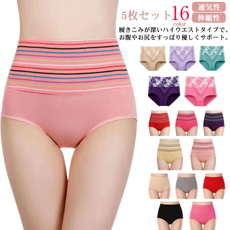 まとめ買い 深め すっぽり お腹、お尻をすっぽり包み込むハイウエストショーツ セット セット ハイウエスト 下着 レディース 5枚 5枚