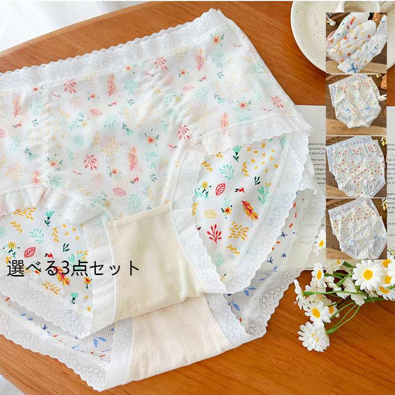 ショーツ 3点セット レディース 下着パンツ 花柄 レース セクシー 巻き込みにくい 抗菌 通気性 スタンダード ランジェリー 女性用 インナー きれいめ おしゃれ