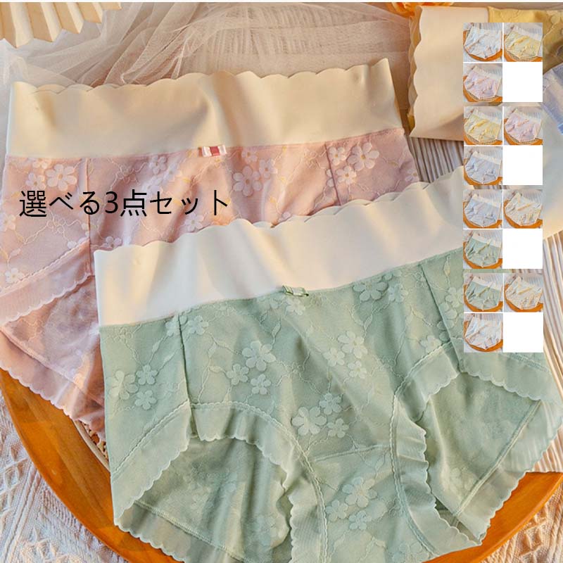 ショーツ 3点セット レディース 下着パンツ レース 花柄 セクシー 巻き込みにくい 通気性 スタンダード ランジェリー 女性用 インナー きれいめ おしゃれ