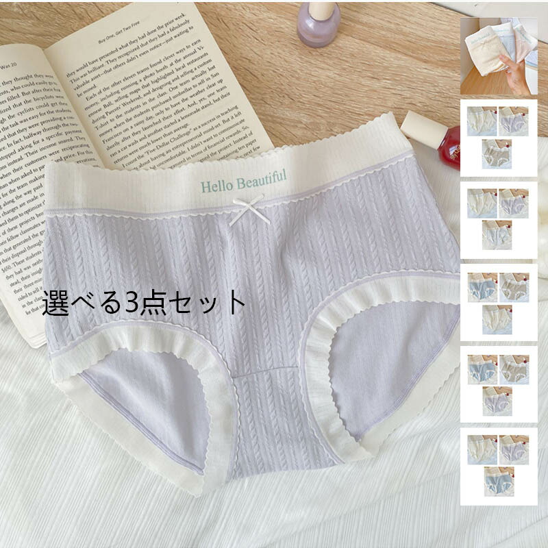 ショーツ レディース 下着パンツ 3枚セット 無地 リボン付き 可愛い 柔らかい 通気性 スタンダード 快適な履き心地 女性用 インナー きれいめ おしゃれ