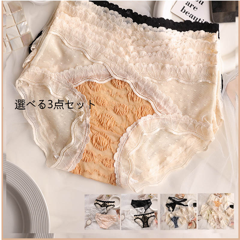 ショーツ 3点セット レディース 下着パンツ レース セクシー 巻き込みにくい 通気性 スタンダード ランジェリー 女性用 インナー きれいめ おしゃれ