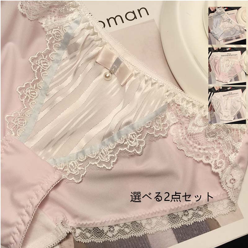 ショーツ 2点セット レディース 下着パンツ レース 蝶結び セクシー 巻き込みにくい 通気性 スタンダード ランジェリー 女性用 インナー きれいめ おしゃれ