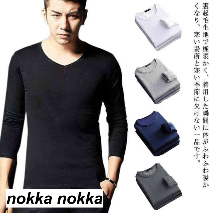 裏起毛 肌着 インナー tシャツ 長袖 メンズ Vネック Uネック 春 秋 冬 カットソー ラウンドネック 丸首 アンダーシャツ 防寒着 防寒 厚手 発熱 スリム 細身 大きいサイズ M-6L