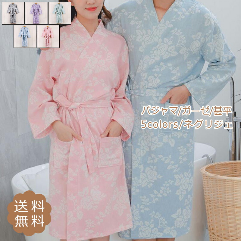 ルームウェア レディース 浴衣 ガウン 和装 パジャマ 寝間着 ネグリジェ レディース パジャマ 長袖 ガーゼ 甚 Vネック 花柄 前開き ゆったり 部屋着 カジュアル 薄手 ポケット付き きれいめ