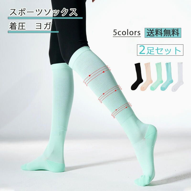 スポーツソックス ハイソックス 2足セット 靴下 レディース 無地 着圧ソックス ヨガ 可愛い シンプル 春夏秋冬 美脚 きれいめ おしゃれ