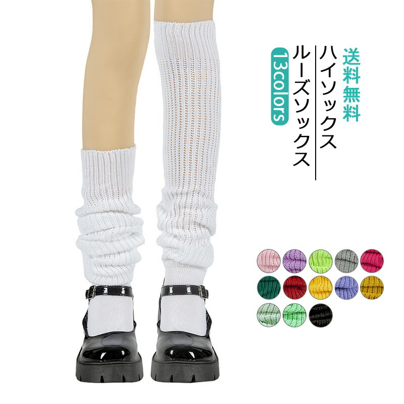ルーズソックス 無地 レディース 靴下 ニット リブ シンプル ハイソックス 厚手 暖かい 秋冬 可愛い 保温 防寒 ロング丈 きれいめ おしゃれ