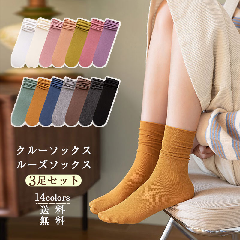クルーソックス レディース ルーズソックス 3足セット 靴下 無地 シンプル ショートソックス 綿 春夏秋冬 美脚 可愛い きれいめ おしゃれ