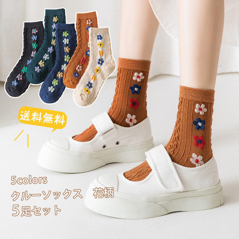 クルーソックス 花柄 レディース 5足セット 靴下 ショートソックス 綿 春夏秋冬 可愛い カジュアル 美脚 きれいめ おしゃれ