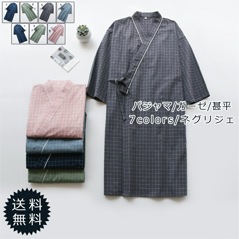 ルームウェア レディース 浴衣 ガウン 和装 パジャマ 寝間着 ネグリジェ メンズ レディース パジャマ チェック柄 カップル ペアルック ガーゼ 甚平 ネック ポケット付き 前開き 部屋着 カジュ