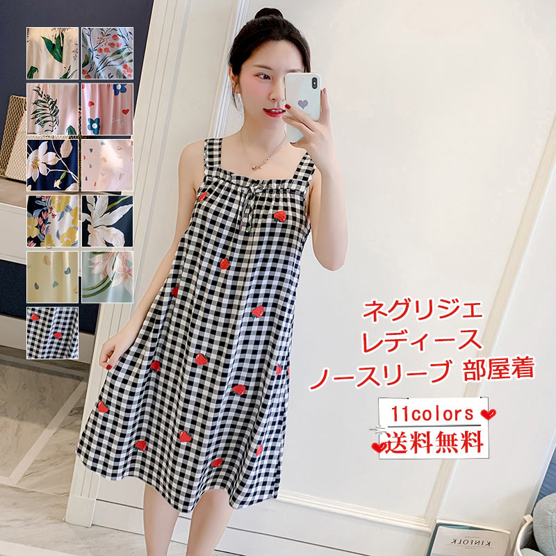 ネグリジェ レディース ノースリーブ 部屋着 スクエアネック シンプル ワンピース 花柄 ルームウェア カジュアル ゆったり かわいい おしゃれ