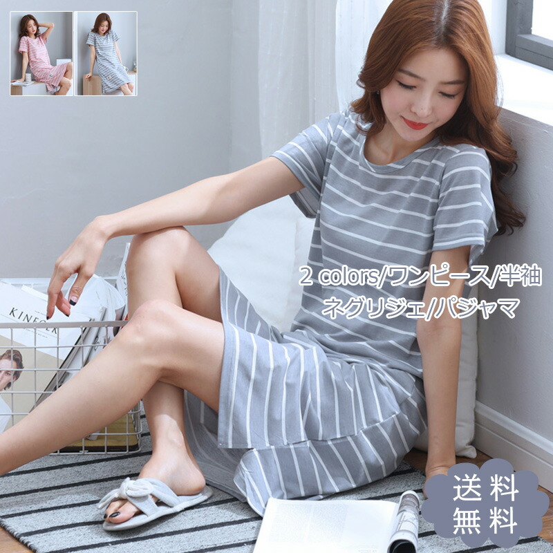 ネグリジェ レディース パジャマ ワンピース 半袖 ストライブ柄インナー 下着 ナイトウェア レディース ナイトウェア ルームウェア ネグリジェ