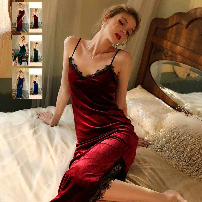 パジャマ レディース ワンピース セクシー ベルベット 春秋 ミディ丈インナー 下着 ナイトウェア レディース ナイトウェア ルームウェア ネグリジェ