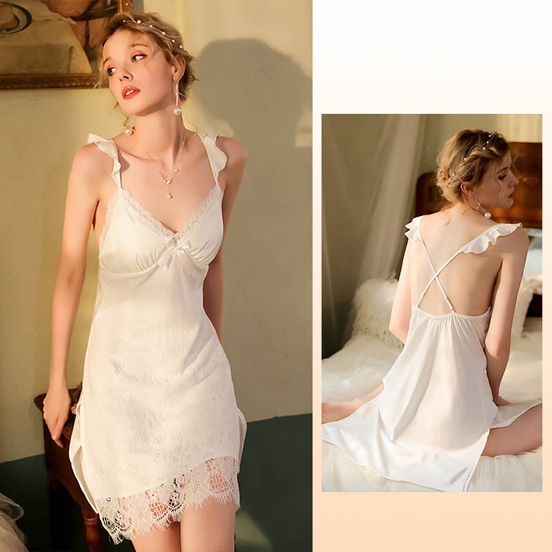セクシー ランジェリー 深 スリット ベビードール サテン スリップ キャミソール レース ベビードール セクシー