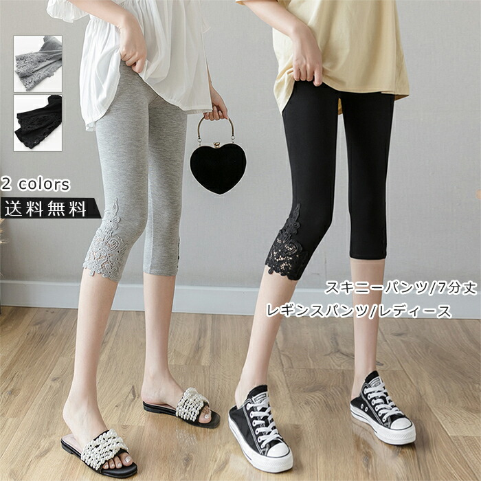 レギンパン ストレッチ レギンス パンツ スパッツ レギパンレディース スキニーパンツ 7分丈 レース 無地 シンブル ウエストゴム 薄手 着痩せ 涼しい ボトムス きれいめ おしゃれ