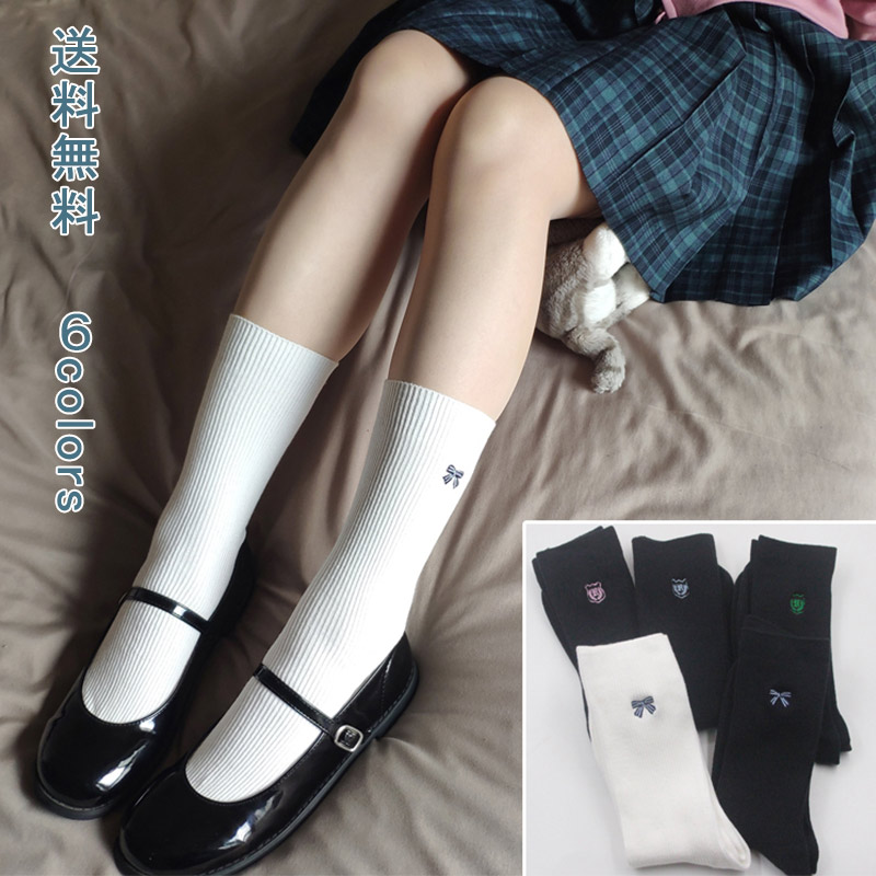 靴下 レディーズ 黒 白 無地 黒靴下 白靴下 ソックス クルーソックス ブラッククルー ホワイトクルー スクール 高校生 大学生 誕生日 刺繍 通学 通勤 プレゼント ギフト