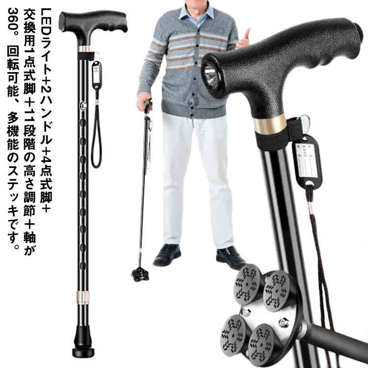 ステッキ 360度回転脚 母の日 父の日 低身長 短い ショート 安定感 おしゃれ医薬品 コンタクト 介護 介護用品 移動 歩行支援用品 ステッキ 杖 四点杖