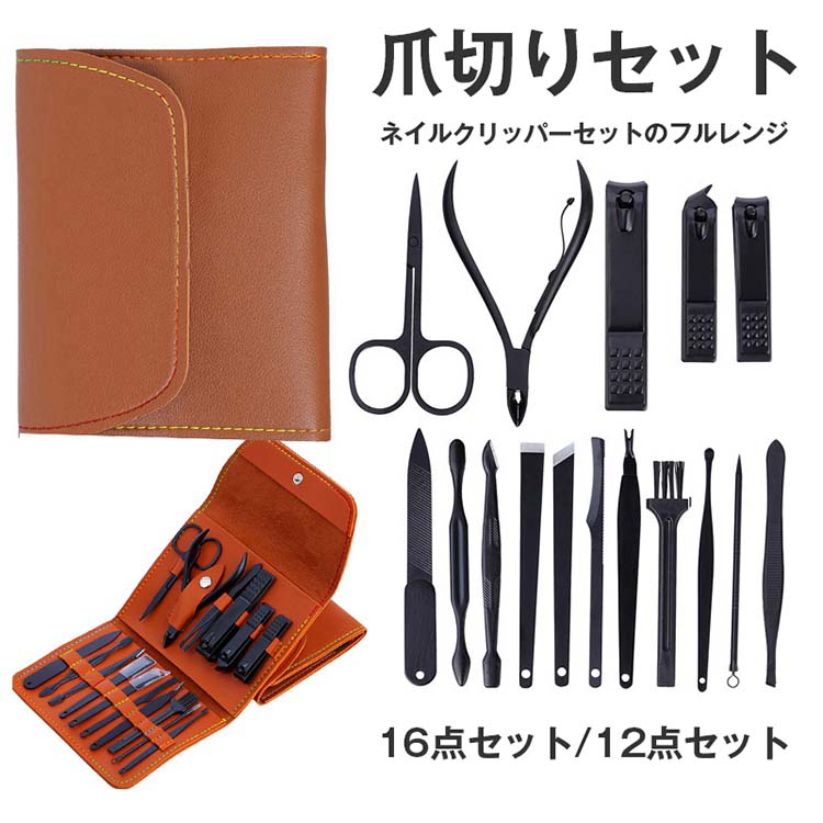 爪切りセット 16点セット ネイルケアセット ネイル道具 男女兼用 爪やすり 携帯便利 耳かき 眉用クリップ 毛抜き 滑り止め ステンレス 手足爪磨き 足用 爪 ニッパー ニキビ取り