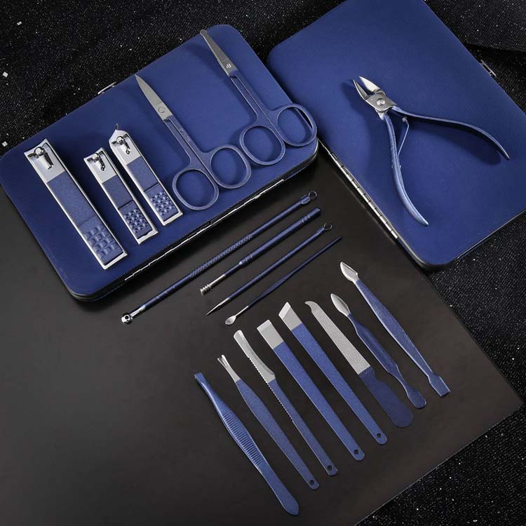 18点セット 爪切りセット 爪やすり 個性 ネイルケアセット クールブルー 硬い爪 厚い爪 男女兼用 ネイルケア 毛抜き 耳かき 眉用クリップ 携帯便利 ステンレス 爪 手 足用 ニッパー