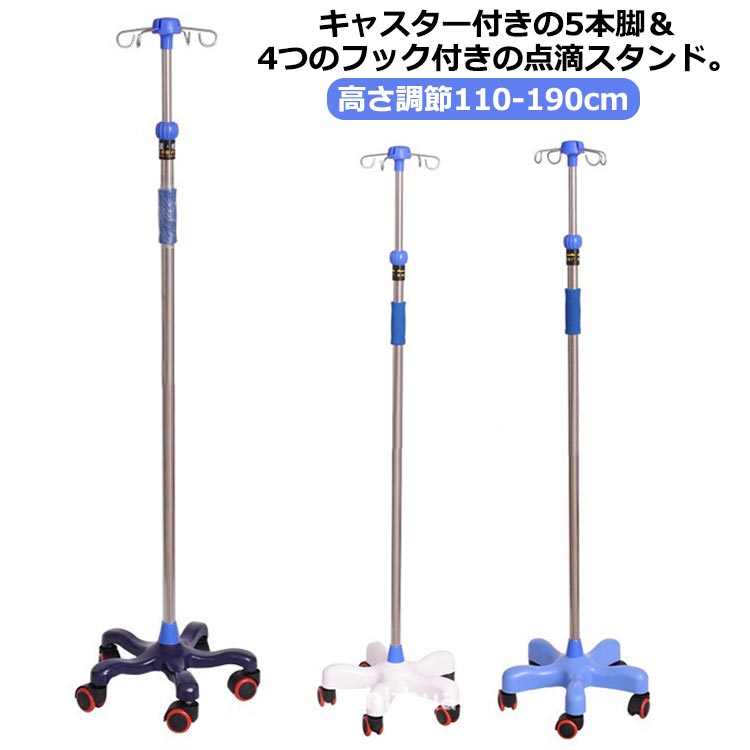 点滴 スタンド スタンド 五つのキャスター付 フック4本架け イルリガードル台 点滴注射 点滴用 点滴バッグ